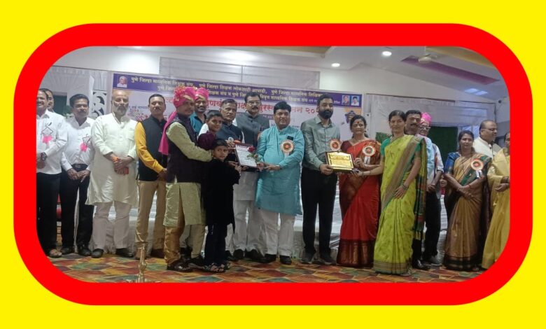 हा भव्य सोहळा रविवारी आळेफाटा (ता. जुन्नर) येथील तुलसी पॅलेस मंगल कार्यालयात मोठ्या उत्साहात पार पडला. पुणे जिल्हा माध्यमिक शिक्षक संघ, टीडीएफ, माध्यमिक शिक्षिका संघ, उच्च माध्यमिक शिक्षक संघ तसेच सेवानिवृत्त माध्यमिक शिक्षक संघ यांच्या संयुक्त विद्यमाने या कार्यक्रमाचे आयोजन करण्यात आले होते. यावेळी जिल्ह्यातील तब्बल ६२ गुणवंत शिक्षकांचा सत्कार करून त्यांना पुरस्कार प्रदान करण्यात आले.